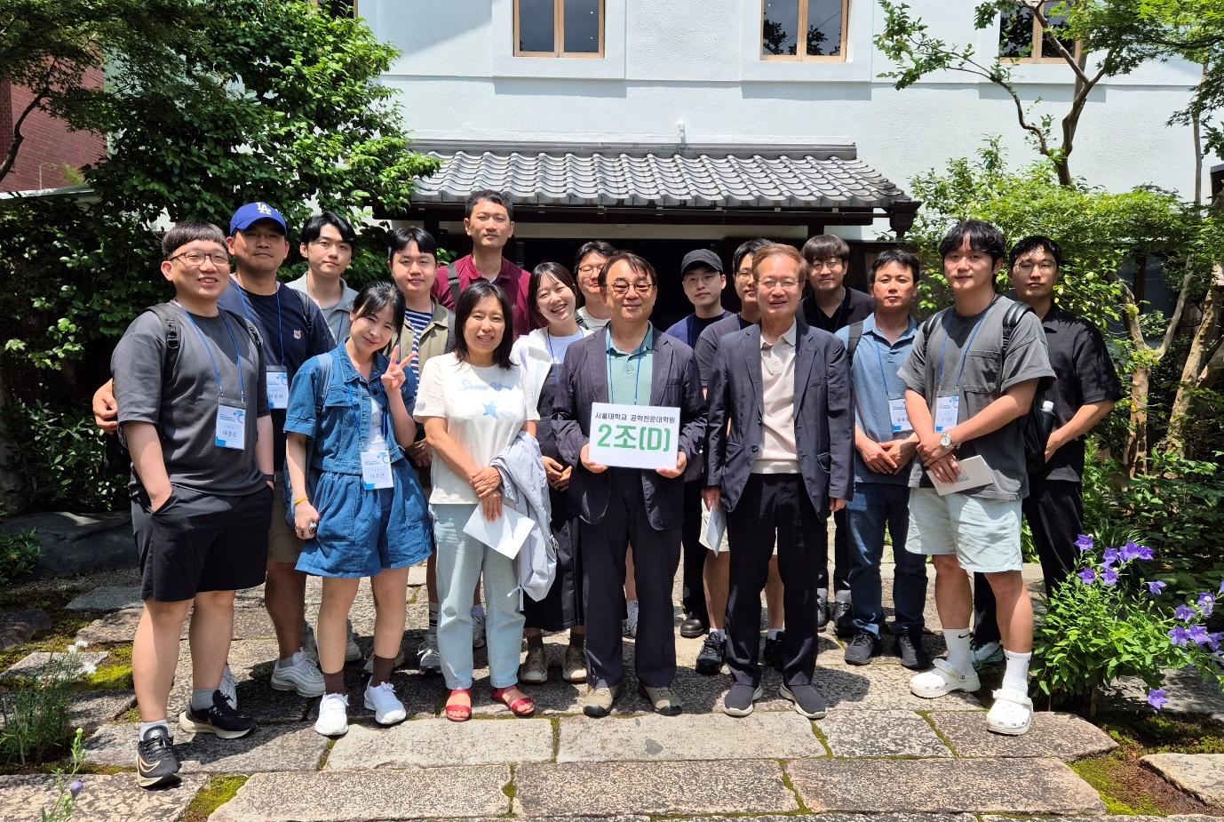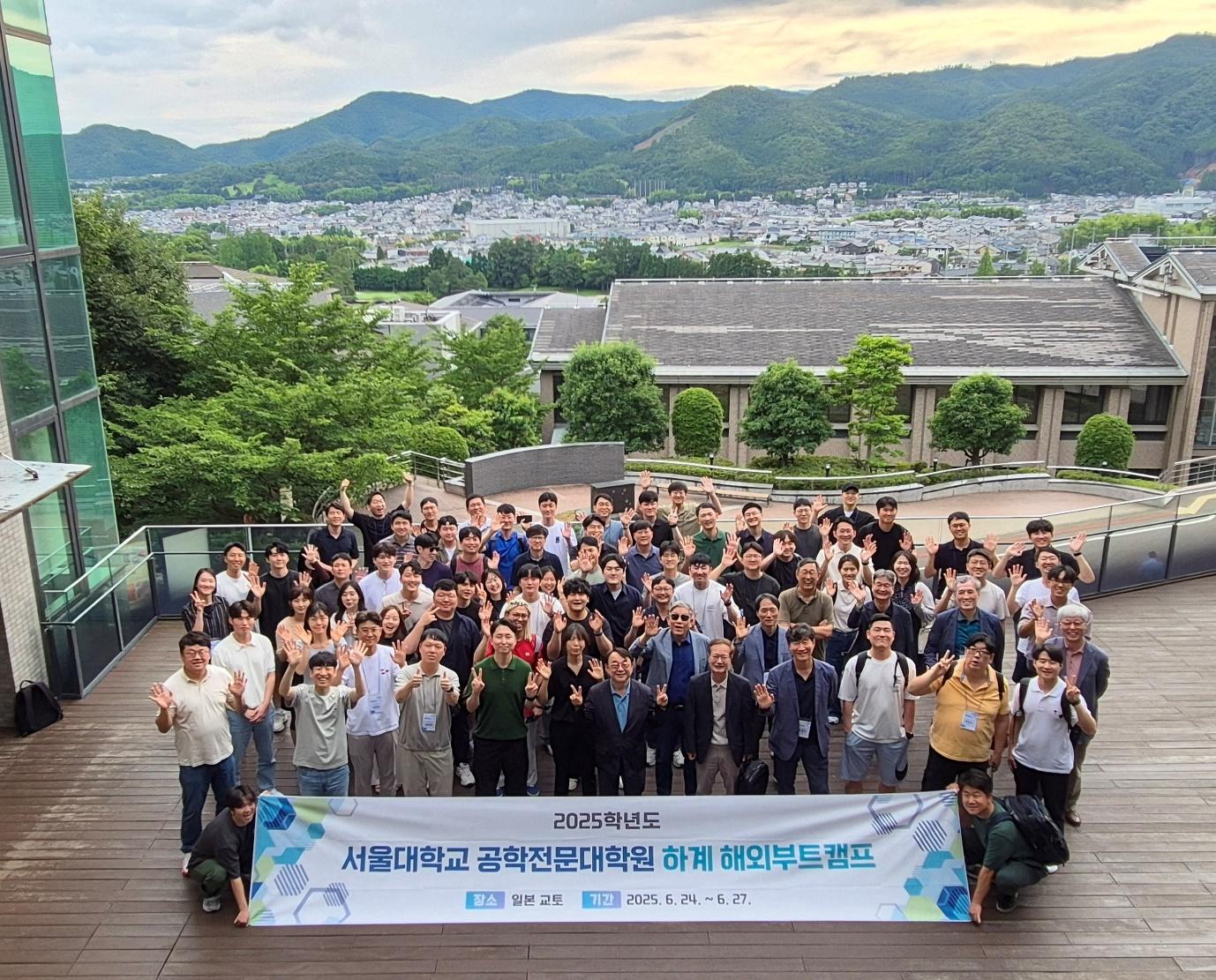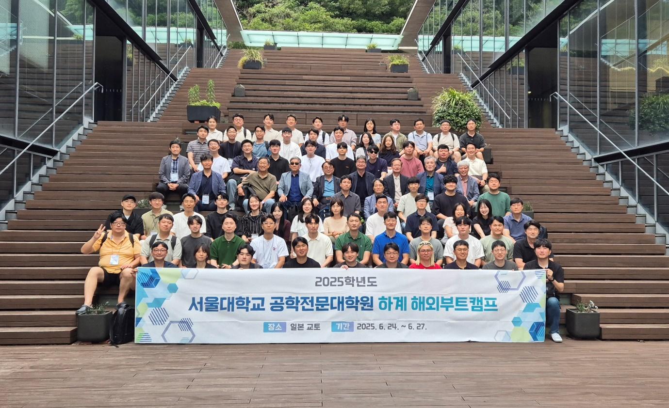 2025년 6월 24일(화)부터 6월 27일(금)까지 공학전문대학원은 일본 교토에서 글로벌 리더십 역량 강화를 위한 집중 연수 프로그램을 실시하였습니다. 이번 프로그램은 3박 4일 동안에 1, 2학년 재학생들과 교수님들을 대상으로 진행되었으며 그 목적은 리더십, 매니지먼트 능력, 글로벌 비즈니스 감각을 기르기 위하여 현지 교육 및 견학에 중점을 두고 진행되었습니다. 연수 프로그램 시작 전날인 6월 23일에는 김성우 교수님과 한훈 교수님이 온라인으로 사전 오리엔테이션을 하셨습니다. 김성우 교수님은 부트캠프의 전체적인 흐름을 안내하셨고, 학생들이 교토 현지에서 연구해야 할 주제들을 정할 수 있도록 사전 교육을 실시하셨습니다. 한훈 교수님은 ‘교토 기업의 특성’이라는 제목으로 교토 지역의 문화와 특징, 문화 유적부터 교토의 대표적인 기업들까지 다양하고 폭넓은 주제로 강의를 하셨습니다. 이 교육을 통하여 학생들은 교토 연수 프로그램의 세부 내용을 사전에 숙지하고 현지에서의 연구와 활동에 대한 방향을 설정할 수 있었습니다. 연수 프로그램 첫날은 교토산업대학교에서 진행되었습니다. 오전 시간에는 서울대학교 공학전문대학원 심형진 부원장님의 인사 말씀을 시작으로 일본 간사이대학 상학부의 최상철 교수님이 ‘저성장시대 일본시장의 특징과 전략과제’에 대한 제목으로 강연을 하셨습니다. 최상철 교수님은 일본 소비자의 독특한 지역애와 그에 기반한 유통 전략, 일본 기업가들의 경험에서 탄생한 경영 방식에 대하여 비교하고 한국 기업에 주는 시사점에 대해서도 말씀하셨습니다. 해외의 대형 유통 기업들이 일본에서 실패한 이유는 일본의 지역성을 간과했기 때문이고 한국 기업도 각 지역의 특징을 이해하고 자신만의 정체성과 경쟁력을 키워 나갈 수 있도록 고민해야 할 시점이라고 강조하셨습니다.