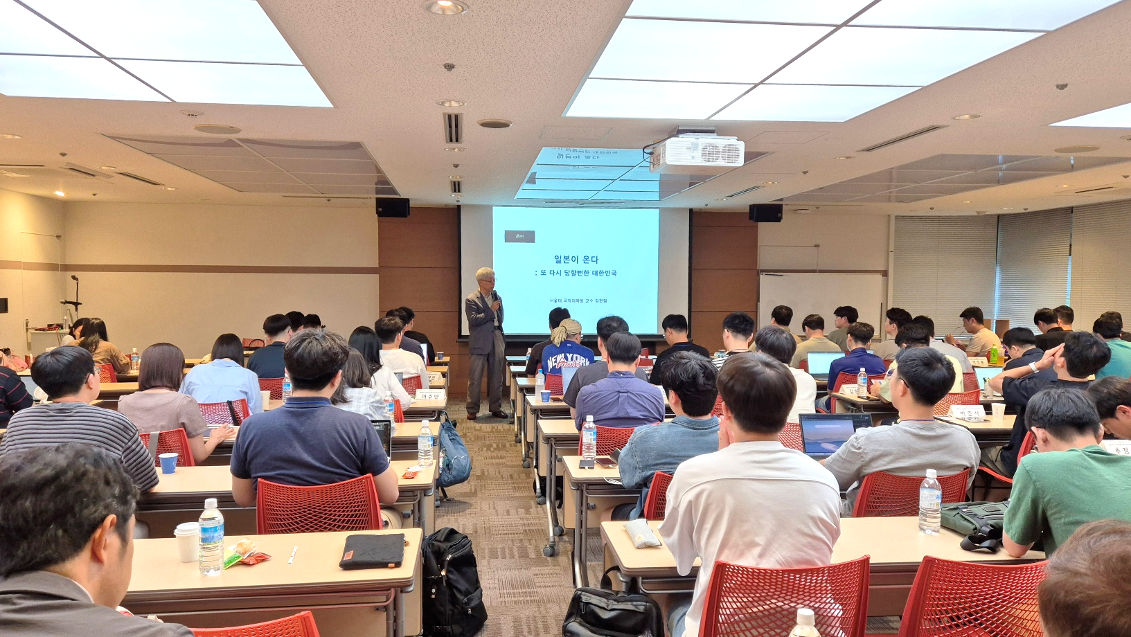 연수 둘째 날에는 교토리서치 파크에서 서울대학교 국제대학원의 김현철 교수님이 ‘일본이 온다’는 제목으로 강연을 하셨습니다. 한국은 산업화와 민주화를 스스로 이뤄낸 반면에 일본은 1955년 체재부터 2012년 체재까지 주어진 체제를 유지해온 국가라고 비교하며 일본은 새로운 세계 전략과 지경학적 이익을 추구하며 변화를 시도하고 있으니 한국은 이를 면밀히 주시해야 한다고 말씀하셨습니다. 끝으로 한국은 정치, 경제, 안보의 모든 분야에서 전략이 필요하다고 강조하셨습니다.