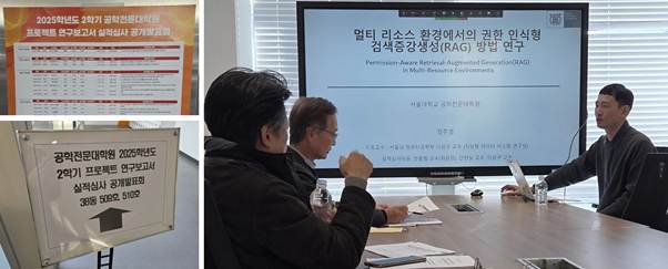 지난 2025년 10월 28일부터 11월 25일까지 2025학년도 2학기 공학전문대학원 프로젝트 연구보고서 실적심사 공개발표회가 진행되었습니다. 이번 심사는 그동안의 연구 성과를 심도 있게 검증하는 자리로, 공개 발표를 원칙으로 진행되었습니다. 심사는 1인당 총 30분(발표 15분, 질의응답 10분, 심사평 5분)이 배정되었습니다. 현장에는 내년 프로젝트 실적심사를 앞두고 연구 방향을 고민하거나, 관심 있는 주제를 청취하려는 1학년 원우들도 다수 참석해 배움의 열기를 더했습니다.